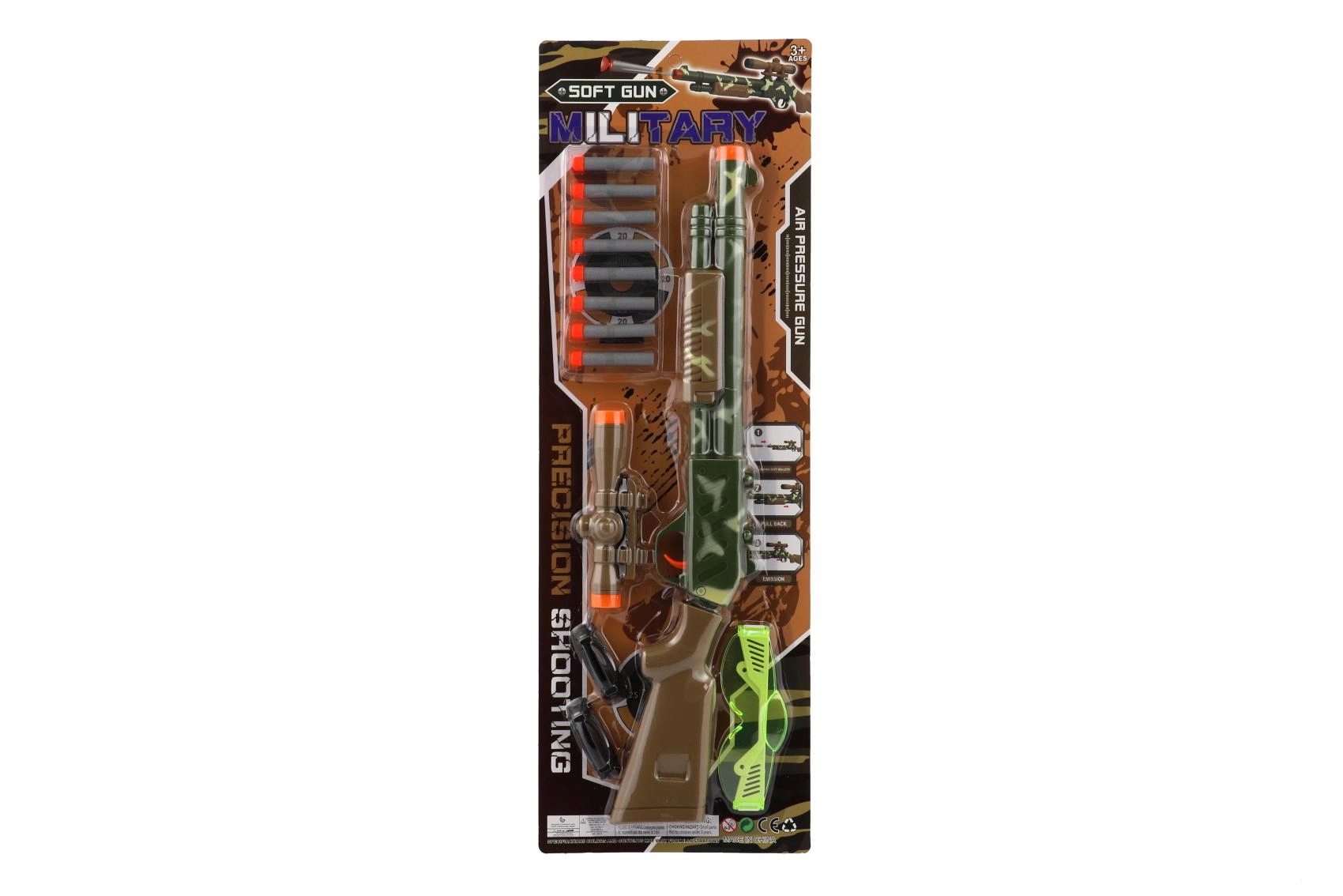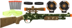 Rinkinyje yra viskas, ko reikia žaidimui: 8 putų šoviniai švelniam ir saugesniam šaudymui bei apsauginiai akiniai didesniam saugumui aktyvaus žaidimo metu. Šautuvo 51 cm dydis patogiai laikosi rankoje ir yra lengvai valdomas.