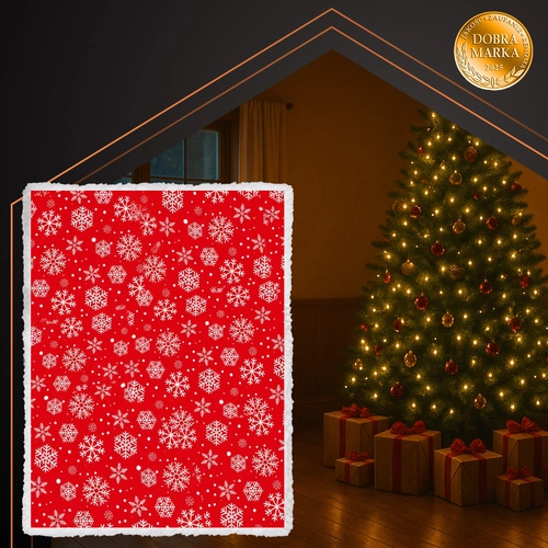 Raudonai baltas dekoras puikiai dera su šventine puošyba, o dėl atsparumo glamžymuisi ir pūkelių susidarymui pledas ilgai išlaiko elegantišką išvaizdą. Pateikiamas su dovanine satino juostele – paruoštas pradžiuginti kaip dovana.