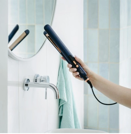 Užapvalinti kraštai ir judančios 25 × 110 mm plokštelės palengvina tiek tiesų ištiesinimą, tiek lengvą užlenkimą ar bangų formavimą. Aiškus LED ekranas rodo esamą temperatūrą, o įrenginys paruoštas darbui maždaug per 80 sekundžių. Maksimaliam patogumui ir saugumui yra užrakinami lankstai, automatinis išsijungimas ir neįkaistantys galiukai.