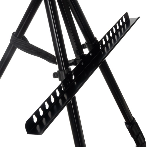 Teleskopinės kojelės, fiksatoriai ir viršutinė spaustuvė saugiai laiko drobę. Tinka tapybai sėdint ir stovint, lengvai susilanksto kelionėms.
