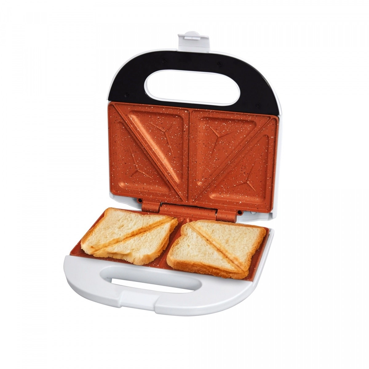 Dvi trikampių plokščių poros tolygiai apkepa duoną ir įdarą. Idealu greitiems pusryčiams, užkandžiams ir vakarienei.