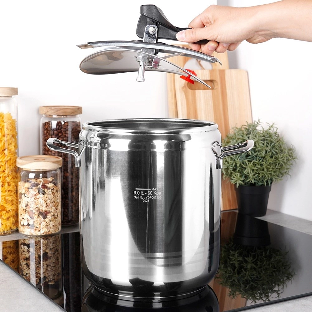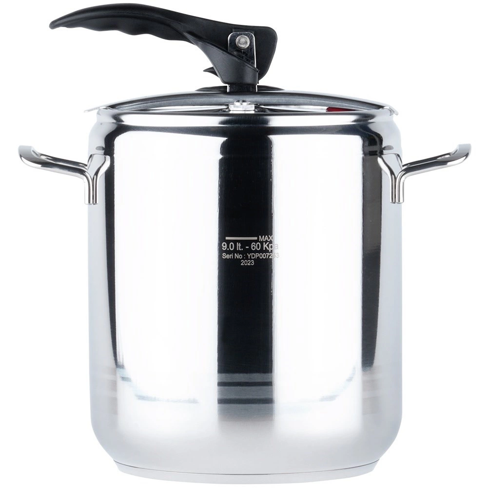Greitpuodis Profi 9 l – patikimas pagalbininkas kasdieniam gaminimui. Jis verda esant aukštam slėgiui, todėl reikšmingai sutrumpina paruošimo laiką ir taupo energiją bei maistines medžiagas patiekaluose. Bendras talpos tūris – 9 l, rekomenduojamas darbinis tūris gaminant slėgyje – maždaug 2/3, kas užtikrina saugų ir efektyvų veikimą.