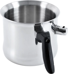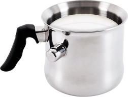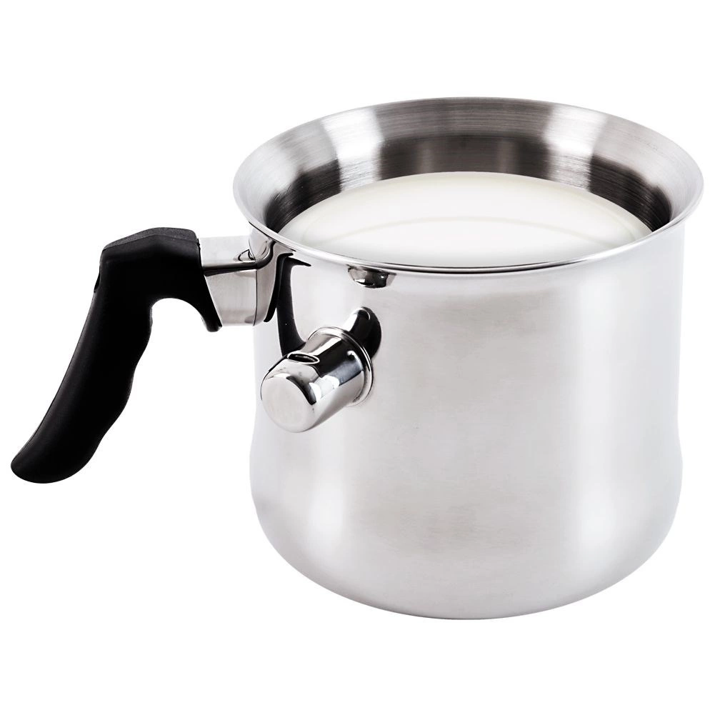 Šis kokybiškas nerūdijančio plieno puodas su dviguba sienele ir vandens apvalkalu puikiai tinka švelniam pieno kaitinimui ir virimui, padažų, pudingų gamybai bei šokolado tirpdymui. Pasiekus virimą, suskamba švilpukas, įspėjantis, kad pienas paruoštas, ir neleidžiantis jam išbėgti.