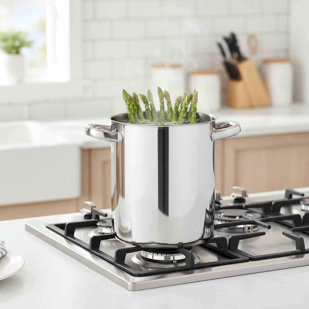 Aukštas puodo korpusas puikiai tinka virti smidrus, spagečius ir kitus ilgesnius produktus nelaužant jų.