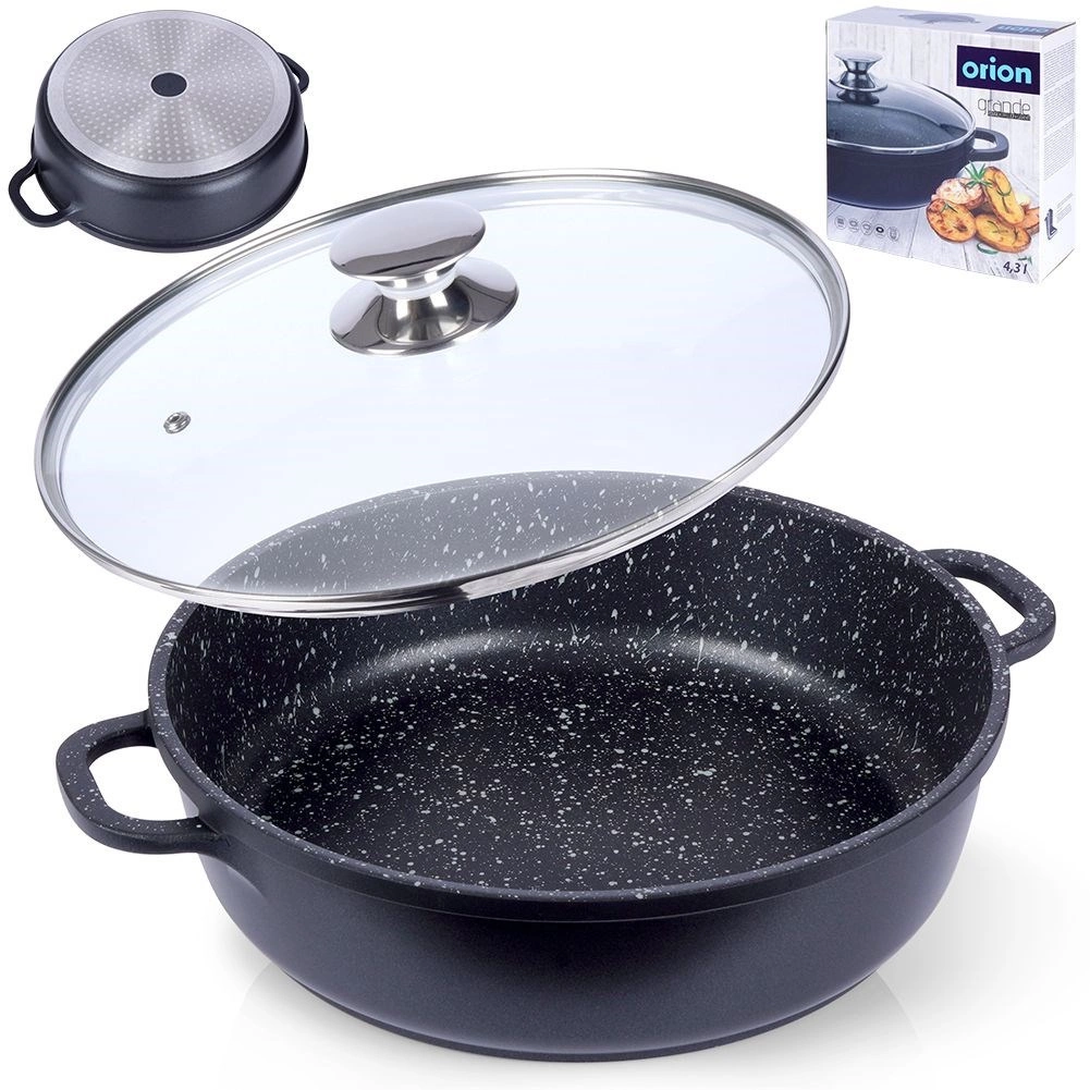 Praktiška 28 cm skersmens granito keptuvė, 4,3 l talpos, su stikliniu dangčiu. Ji pasižymi nelipniu paviršiumi, greitu ir tolygiu įkaitimu bei universaliu naudojimu ant visų tipų viryklių, įskaitant indukcines. Patvari PFLUON granito danga be PFOA ir PTFE leidžia gaminti su mažesniu riebalų kiekiu ir užtikrina lengvą valymą.