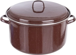 Šis universalus dangtis pagamintas iš aukštos kokybės emaliuoto plieno elegantiškos rudos spalvos su subtiliu taškuotu raštu. Tinka 32 cm skersmens indams, o dėl tvirtos rankenėlės juo patogu naudotis. Emalis yra higieniškas, saugus sveikatai ir tinkamas alergiškiems asmenims.
