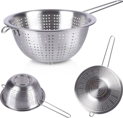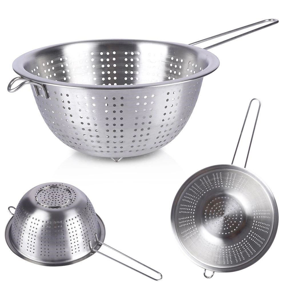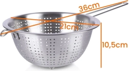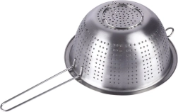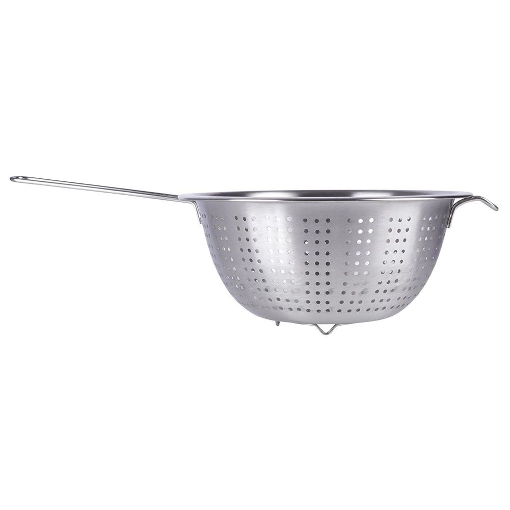 Universalus nerūdijančio plieno sietelis, 21 cm skersmens, su ilga rankena – idealiai tinka makaronams nukošti, vaisiams ir daržovėms plauti bei skysčiams nupilti. Dėl stabilių kojelių ir pagalbinio kabliuko jį patogiai atremsite į puodą ar dubenį. Pagamintas iš kokybiško nerūdijančio plieno, užtikrinančio ilgaamžiškumą ir lengvą valymą.