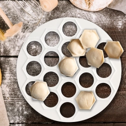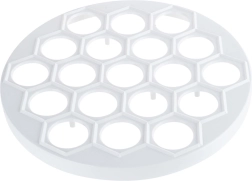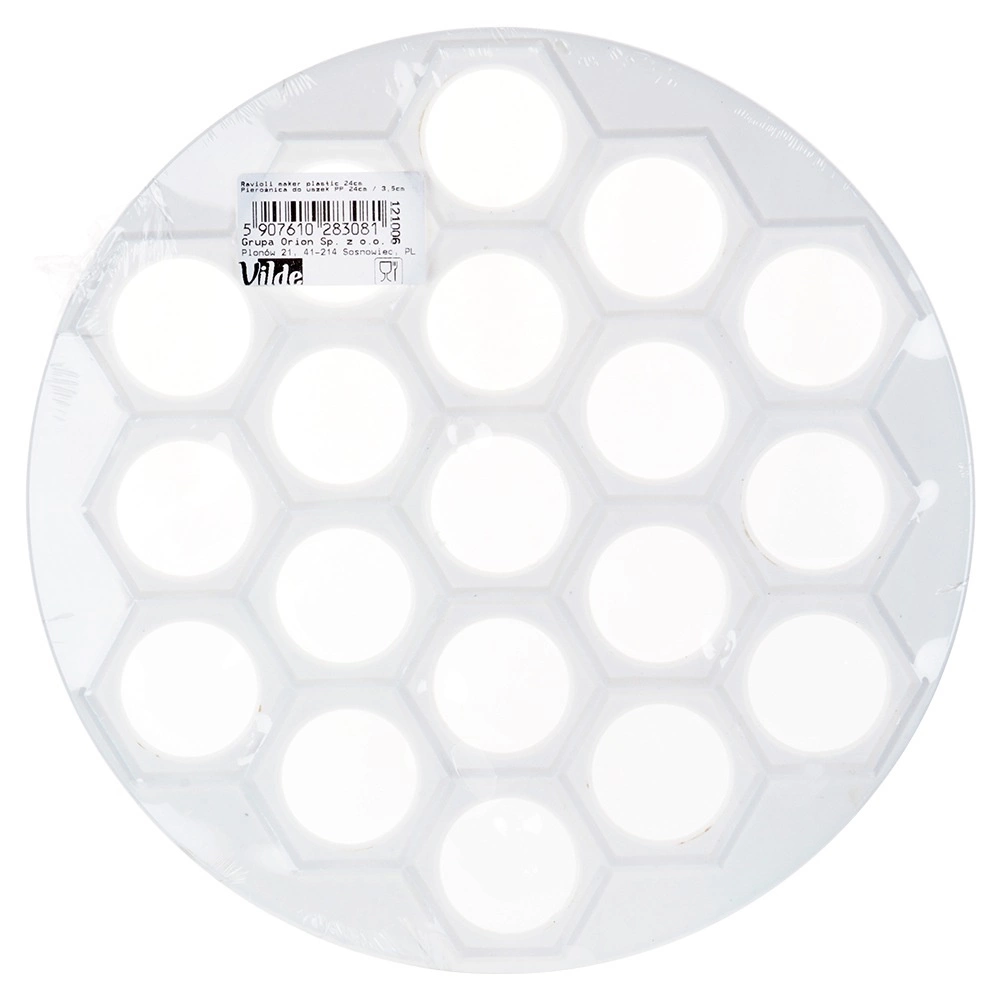 Praktiška pelmenų, ravioli ir mini virtinių forma, 24 cm skersmens, greitai paruošite net 37 gabalėlius vienu metu. Pagaminta iš lengvos ir patvarios maistinio plastiko medžiagos, baltos spalvos, ideali greitam ir tolygiam įdarų bei tešlos formavimui. Puikiai tinka kiekvienai virtuvei ir maitinimo įstaigoms, taupo laiką ir užtikrina tobulą formą kiekvienam gabalėliui.