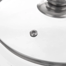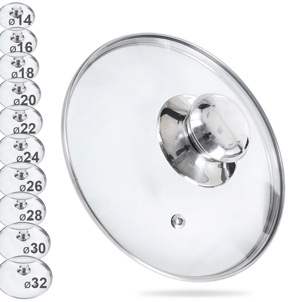 Stiklinis dangtis 14 cm – puikus priedas mažesniems puodams, keptuvėms ir prikaistuviams. Pagamintas iš karščiui atsparaus stiklo su nerūdijančio plieno apvadu ir rankenėle, pasižymi ilgaamžiškumu ir lengva priežiūra. Skaidrumas leidžia kontroliuoti patiekalą neprarandant šilumos ir garų.