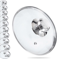 Universalus 14 cm skersmens stiklinis dangtis su karščiui atspariu stiklu, nerūdijančio plieno krašteliu ir rankenėle bei praktiška garų išleidimo anga. Dėl skaidraus stiklo galite stebėti virimą nekeldami dangčio, jis tvirtai priglunda ir padeda sutrumpinti virimo laiką bei sumažinti taškymąsi.
