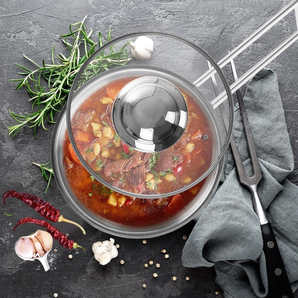 - Saugu ir praktiška: karščiui atsparus stiklas, nerūdijančio plieno kraštelis ir patogi rankenėlė