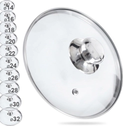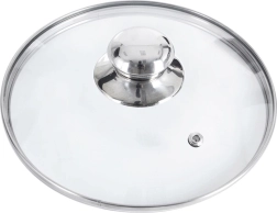 Universalus stiklinis dangtis, 20 cm skersmens, su nerūdijančio plieno kraštu ir patogia rankenėle. Dėl skaidraus stiklo turėsite visišką virimo kontrolę, garų išleidimo anga užtikrina saugų garų pasišalinimą, o atsparumas iki 200 °C puikiai tinka kasdieniam naudojimui. Išgaubta forma gerina šilumos cirkuliaciją, o sandarus kraštas neleidžia garams išeiti ir saugo, kad kondensatas nevarvėtų už indo ribų.