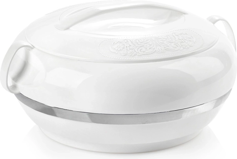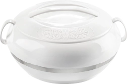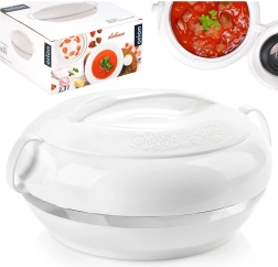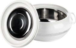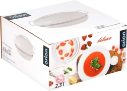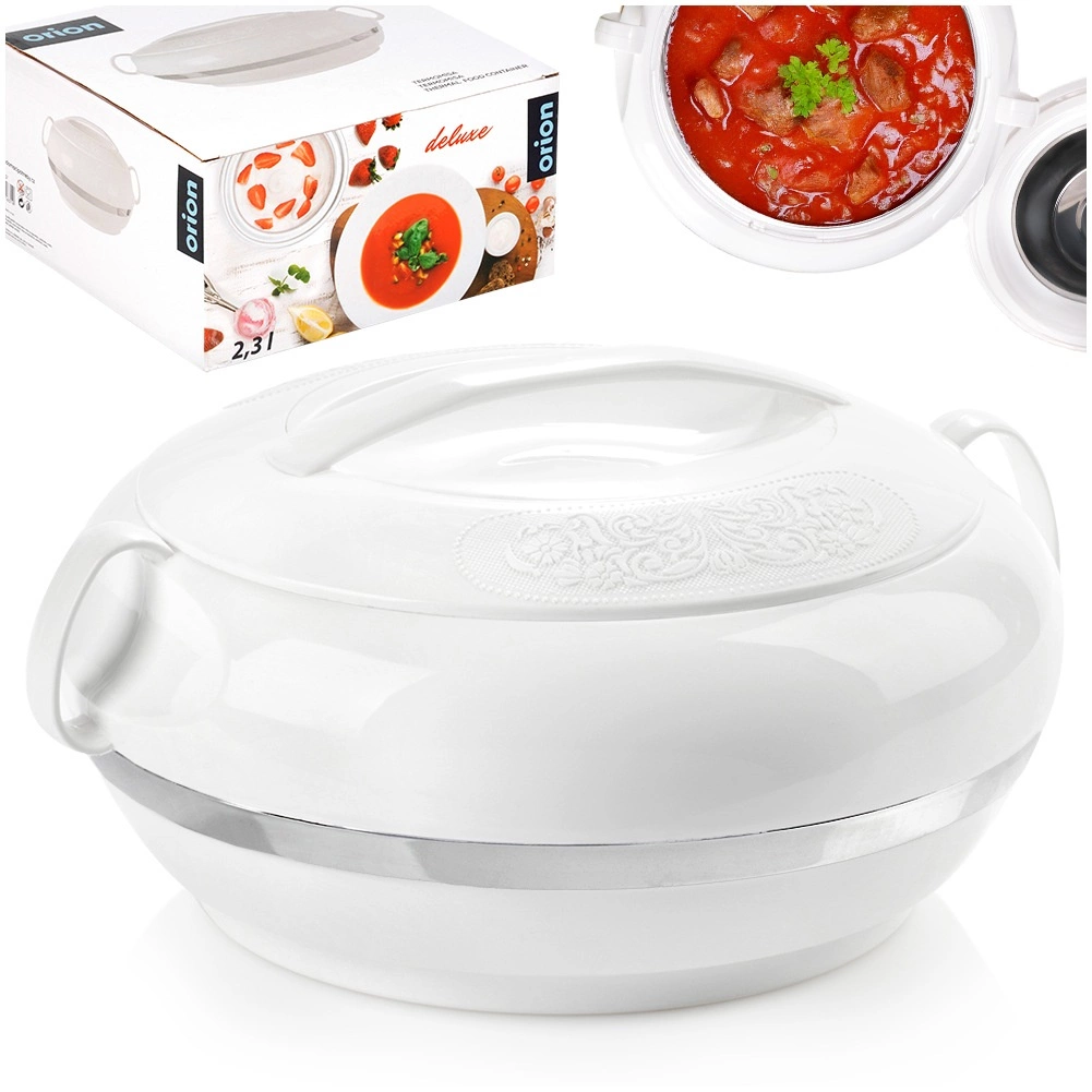 Praktiška termodubenė ORION Deluxe, 2,3 l talpos, išlaiko jūsų patiekalus ilgiau šiltus arba maloniai vėsius. Išorinio plastiko ir nerūdijančio plieno vidinio įdėklo derinys užtikrina veiksmingą šilumos izoliaciją iki 2 valandų. Dėl sukamo dangčio su dekoratyviniu reljefu ir tvirtos rankenos ją patogu nešioti ir stilingai patiekti.
