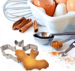 Idealu Helovynui – išpjauna tešlą, fondantą ar net sūrį į įspūdingą šikšnosparnio siluetą.