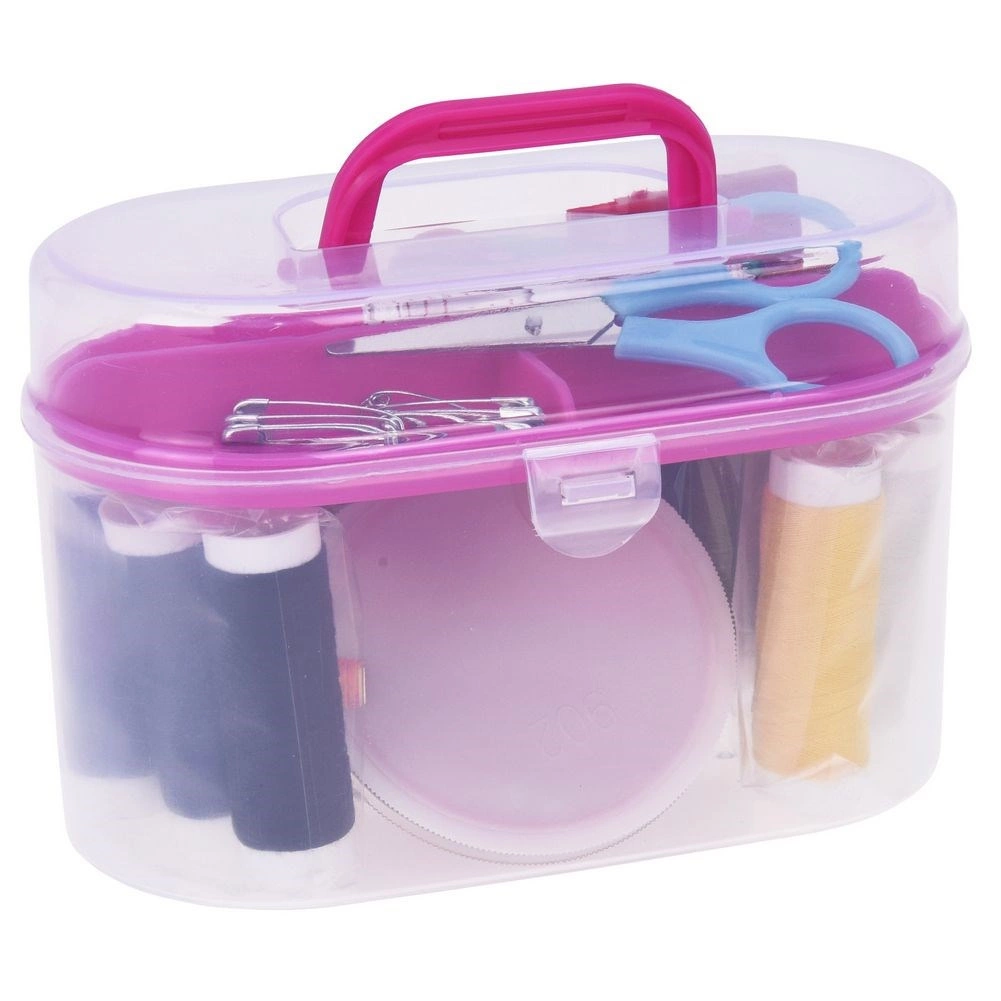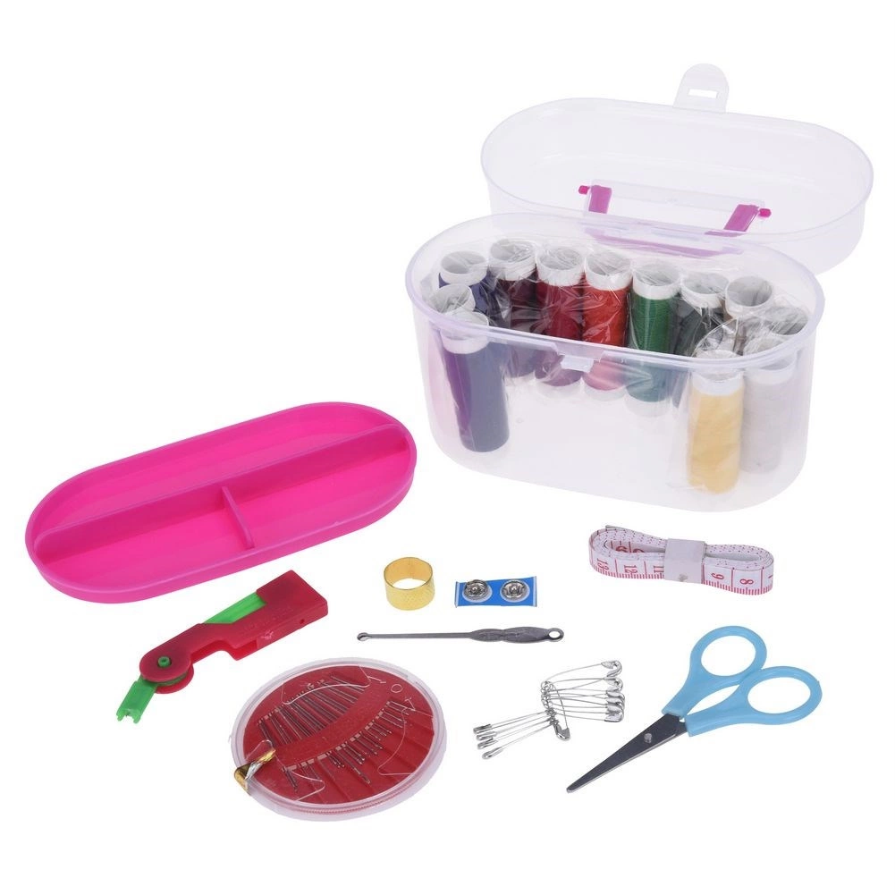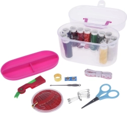 Praktiškas siuvimo rinkinys su 50 dalių nešiojamame organizeryje. Sudėtyje yra spalvoti siūlai, adatų rinkinys, mažos žirklutės, centimetras, sagos, antpirštis, siūlų įvėriklis ir segamosios žiogelės. Lengva, permatoma dėžutė su spaustuku idealiai tinka kelionėms ir namų taisymams. Patvarūs ir elastingi siūlai palengvina greitą apsiuvimą ir drabužių pataisas.