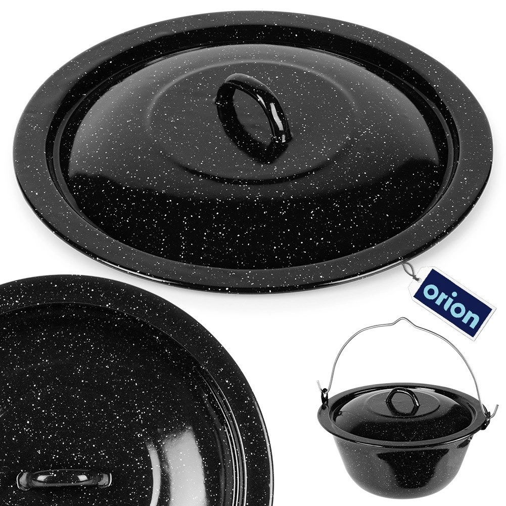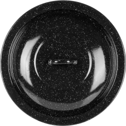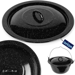 Universalus emaliuotas dangtis, 34 cm skersmens, skirtas vengriškiems 7,5 l katilams. Pagamintas iš patvaraus plieno su juoda emaliuota danga, kuri yra nekenksminga sveikatai ir tinkama alergiškiems. Dėl tvirto laikiklio ir atsparumo įbrėžimams bei korozijai sulaiko šilumą ir drėgmę, gerina gaminimo rezultatus gamtoje ir sode.