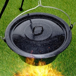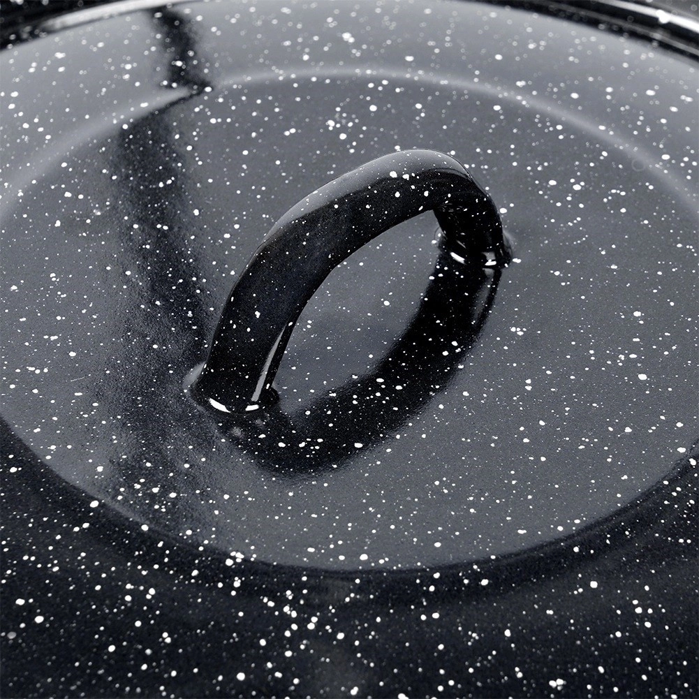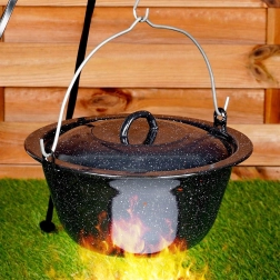 Juodas emalis saugo nuo korozijos ir įbrėžimų, yra higieniškas ir lengvai valomas – idealus reguliariam maisto gaminimui lauke.