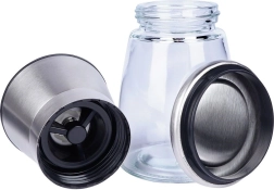 Skaidraus stiklo ir nerūdijančio plieno derinys leidžia patogiai kontroliuoti kiekį ir suteikia patvarumą bei modernią išvaizdą. Dangtelis sulaiko maltų prieskonių likučius ir palaiko virtuvėje švarą. Tinka naudoti namuose ir gastronomijoje.
