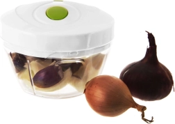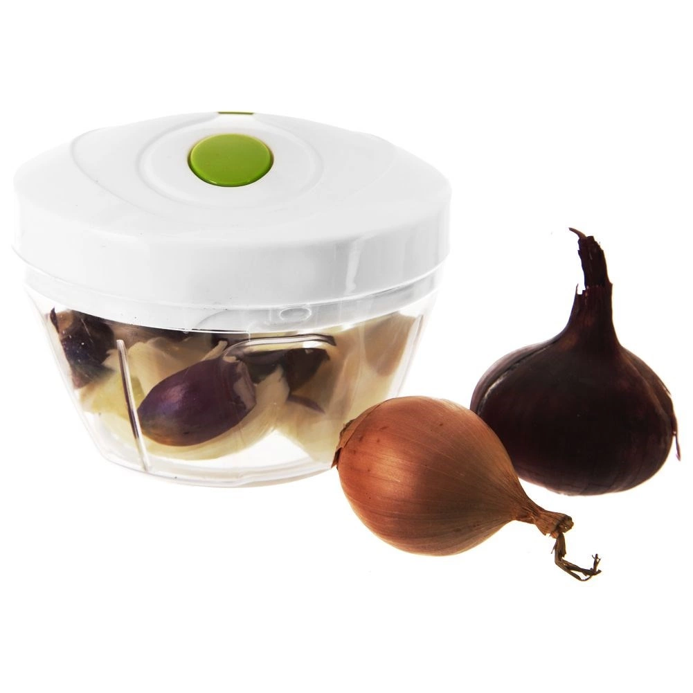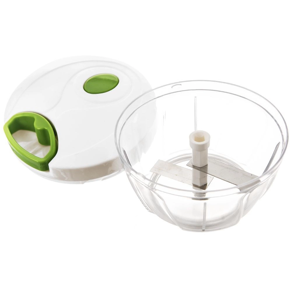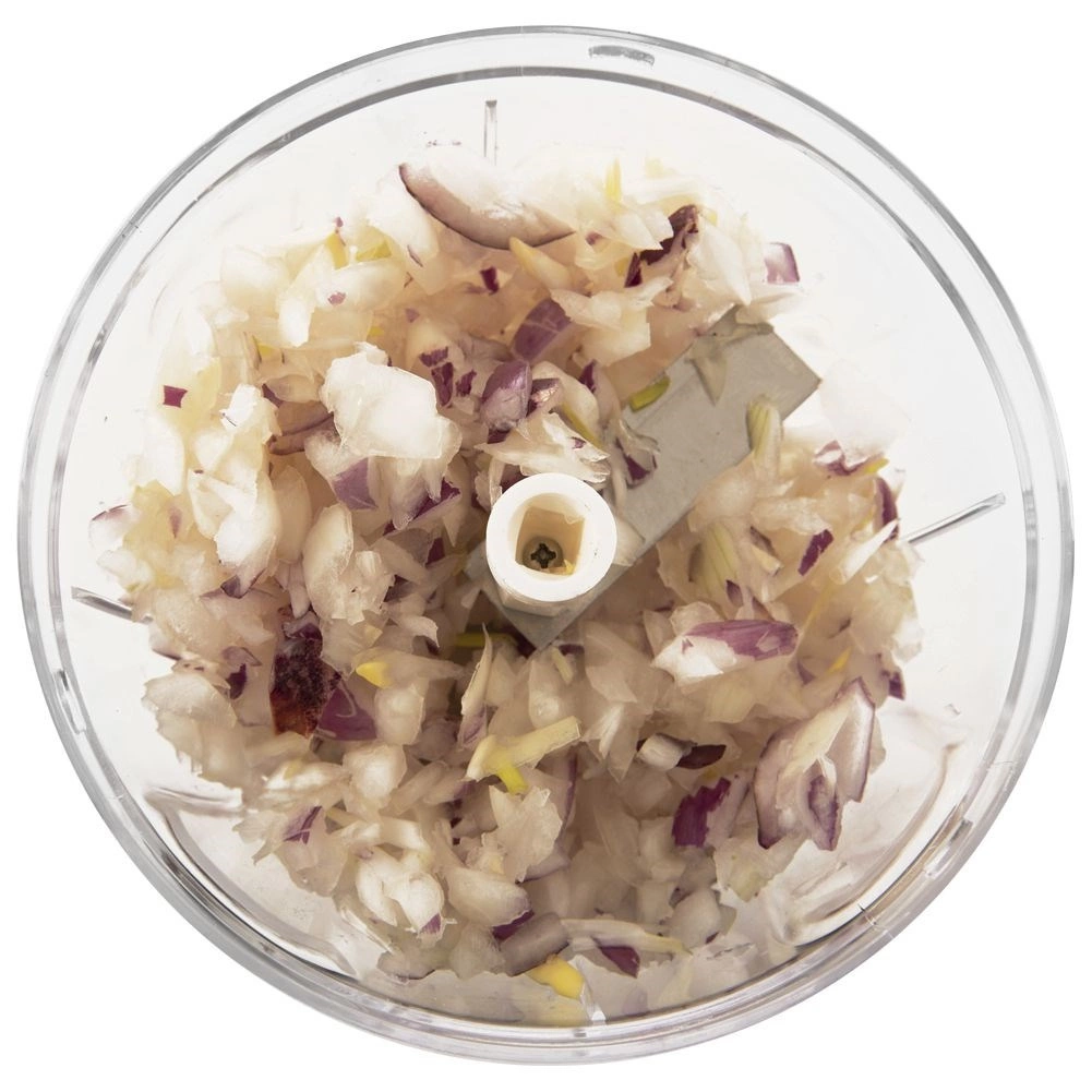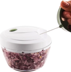 Praktiškas virtuvės pagalbininkas kasdienei ruoštai – rankinė smulkintuvė su traukimo mechanizmu. Tiesiog patraukite už dangtyje esančios rankenėlės ir akimirksniu susmulkinkite, supjaustykite ar sumaišykite be elektros. Dėl permatomo indo turėsite visišką stambumo kontrolę – traukimų skaičius lemia galutinę tekstūrą.