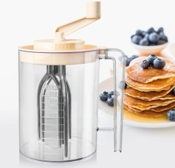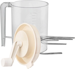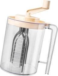 Praktiškas rankinis plaktuvas su rankenėle ir integruotu 1,5 l matavimo ąsočiu patogiam plakimui, maišymui ir tešlos paruošimui. Dėl permatomos talpos su tiksliu ml ir litrų skirstymu, tvirta rankena ir dangteliu nuo taškymosi greitai ir švariai paruošite plaktą grietinėlę, baltymų putą, blynų tešlą ir padažus. Mechaninis veikimas be elektros, atsparios medžiagos ir paprasta priežiūra daro šį plaktuvą patikimu pagalbininku kiekvienoje virtuvėje.