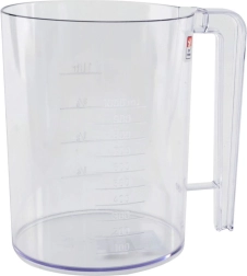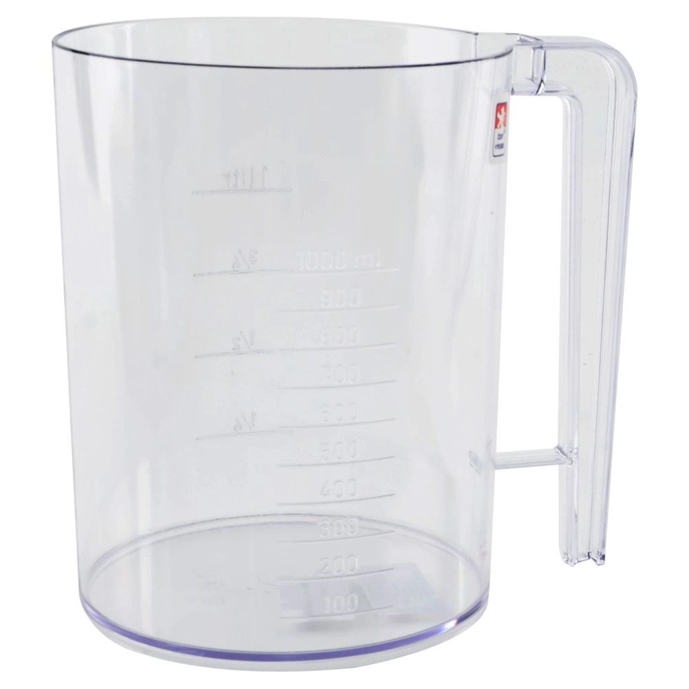 Permatomas ąsotis su aiškia 100–1000 ml skale ir 1/4–1 l žymėjimu palengvina ingredientų kiekio ir tešlos konsistencijos kontrolę.