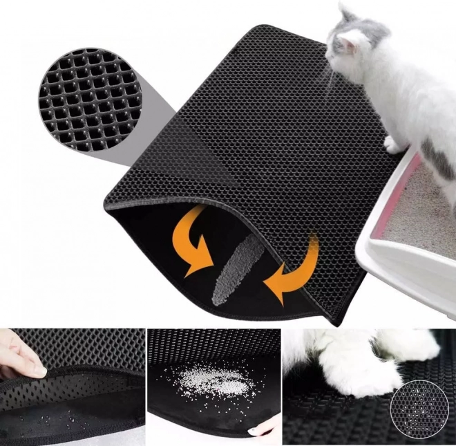 Kilimėlis po kačių tualetu yra būtinas pagalbininkas kiekvienam kačių šeimininkui. Specialus dizainas padeda išlaikyti aplink kačių tualetą švarą, sulaikydamas nuo letenų nukrentantį kraiką, kai katė išeina iš dėžės.