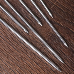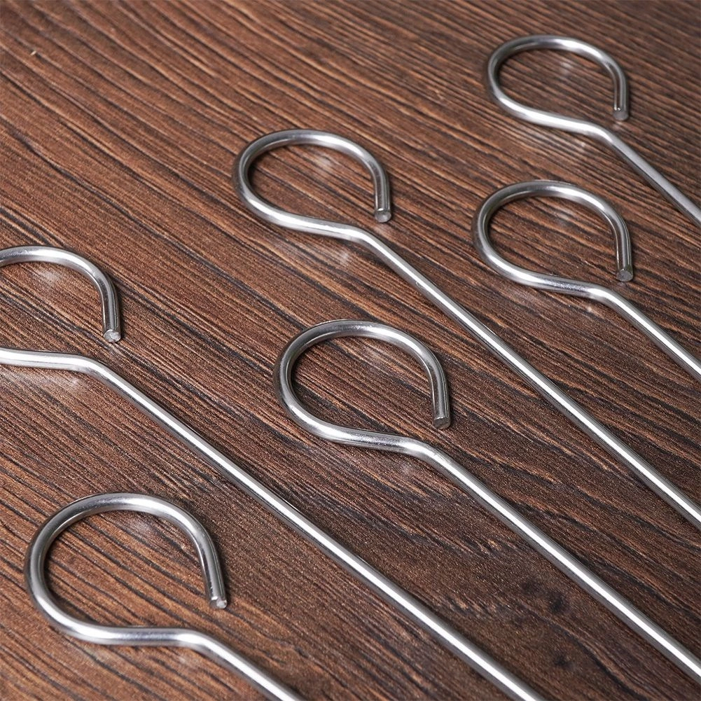 Atraskite patikimus iešmus kiekvienam kepsniui ant grilio. Dėl nerūdijančio plieno jie yra atsparūs karščiui ir korozijai, o tinkamai prižiūrimi tarnaus daugelį metų. Glotnus paviršius palengvina ingredientų suvėrimą ir valymą, o apvali kilpelė gale užtikrina tvirtą suėmimą ir apsaugo nuo maisto slydimo.