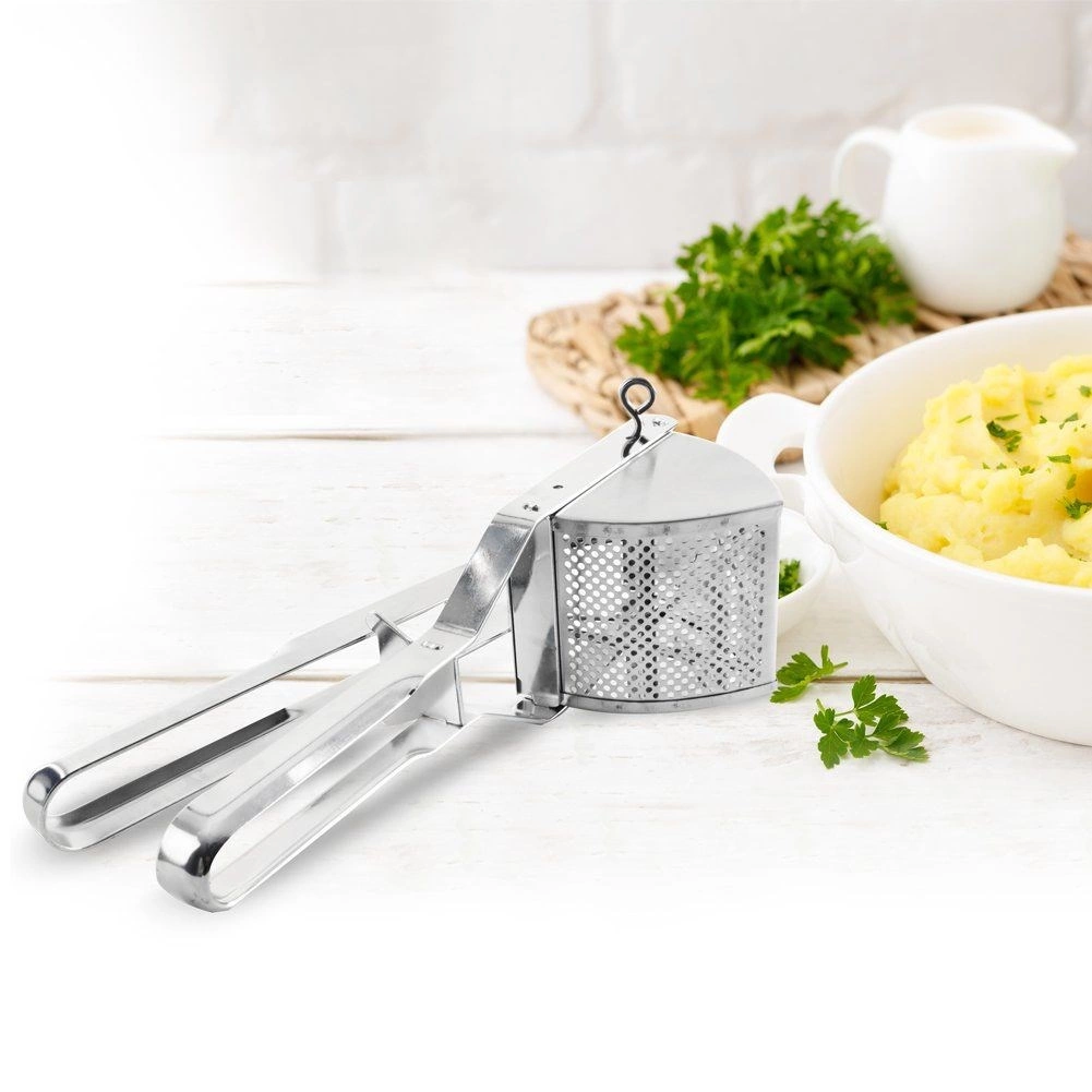Ši patvari nerūdijančio plieno bulvių spaudyklė lengvai perleis virtas bulves bei kitą minkštą daržovę ar vaisius. Dėl tvirtos konstrukcijos ir patogių rankenų tereikia lengvai paspausti, ir akimirksniu gausite švelnią, purią konsistenciją be gumulėlių.