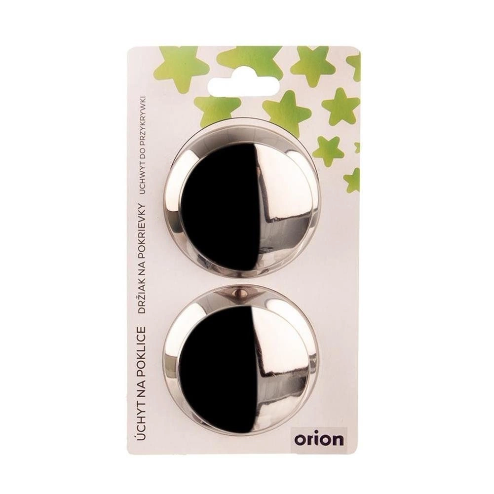Praktiškas dviejų universalių dangčių rankenėlių rinkinys iš kokybiško nerūdijančio plieno, elegantiškos sidabrinės spalvos. Tinka dangčiams, kurių skersmuo 14–30 cm, pačių rankenėlių skersmuo 6,5 cm, o dėl apvalios formos užtikrina patogų ir stabilų suėmimą. Lengvas montavimas, galima plauti indaplovėje ir suderinama su plačia puodų bei keptuvių įvairove. Originalus ORION prekės ženklo produktas.