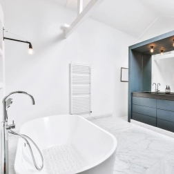Permatoma apdaila su akmenėlių faktūra estetiškai susilieja su aplinka ir išlaiko švarų, modernų įvaizdį.