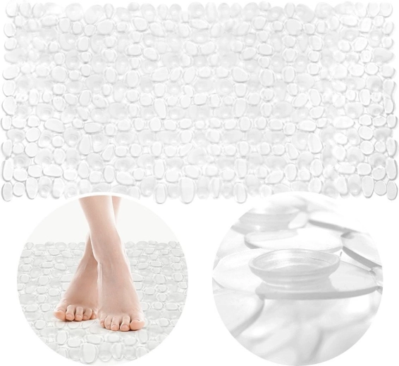 Praktiška neslystanti danga dušui ar voniai užtikrina stabilų žingsnį net ant šlapio paviršiaus. Dėl daugybės siurbtukų ji tvirtai laikosi vietoje, o švelni, akmenėlių faktūra suteikia komforto tiek prausiantis po dušu, tiek maudantis vonioje. Permatomas dizainas yra neįkyrus ir elegantiškai dera prie bet kokio vonios stiliaus.