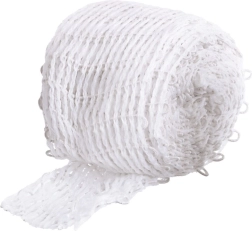 Tinklas sujungia gumą ir kokybišką poliesterį patikimam suspaudimui ir vyniotinių bei kumpių formos išlaikymui be trūkinėjimo.