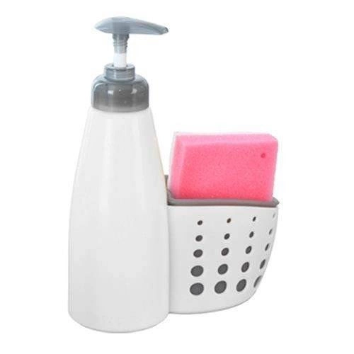 Jokių neestetiškų butelių aplink plautuvę. Elegantiškas dozatorius su laikikliu leidžia laikyti priemonę ir kempinėlę vienoje vietoje. Išimamas krepšelis lengvai valomas, o vėdinimo angos pagreitina džiūvimą, todėl kempinėlė ilgiau išlieka gaivesnė. Pakuotėje yra ir dvipusė kempinėlė kasdieniam plovimui.