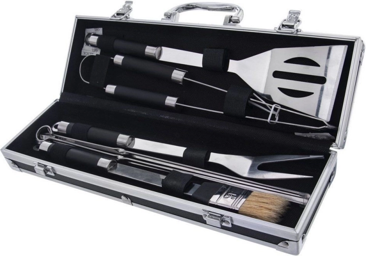 Viskas, ko reikia nerūpestingam kepimui ant grilio, vienoje vietoje. Šis 9 dalių nerūdijančio plieno rinkinys siūlo tvirtus įrankius su patogiomis, ilgomis rankenomis saugiam ir užtikrintam valdymui prie įkaitusio grilio. Praktiškas lagaminėlis su rankena ir užsegimais užtikrina tvarkingą laikymą ir lengvą transportavimą.