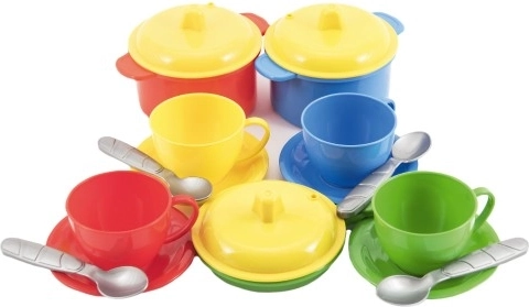 Vaikiškas indų rinkinys TECHNOK, 18 vnt. – idealus mažiesiems virėjams ir virėjėlėms, norintiems smagiai žaisti gaminant. Rinkinys yra patvarus, lengvas ir saugus, todėl puikiai tinka žaidimams lauke.