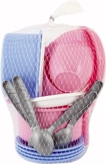 Su šiuo spalvingu vaikiškų indų rinkiniu vaikai gali bet kur mėgautis įsivaizduojamų skanėstų ruošimu. Puikiai tinka smėliui, sodui ar paplūdimiui – skatina kūrybiškumą ir interaktyvų žaidimą. Indai pagaminti iš patvaraus plastiko, pritaikyto mažoms rankytėms.