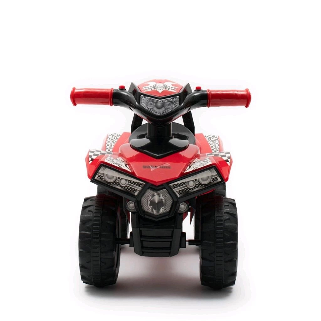 Smagus ir stabilus vaikiškas keturatis BABY MIX – idealus stumdomas balansinis paspirtukas mažiesiems vairuotojams nuo 12 iki 36 mėn. Jame yra 3 melodijos, garsinis signalas ir mirksinčios lemputės ant vairo, kurios skatina žaidimą ir lavina motoriką. Dėl plataus sėdynės, ergonominių vairų ir didelio plastikinio ratų važiavimas yra patogus ir saugus. Praktiška daiktadėžė po sėdyne talpina smulkius žaislus. Pagaminta iš kokybiško ir tvirto plastiko, iki 27 kg apkrovos.