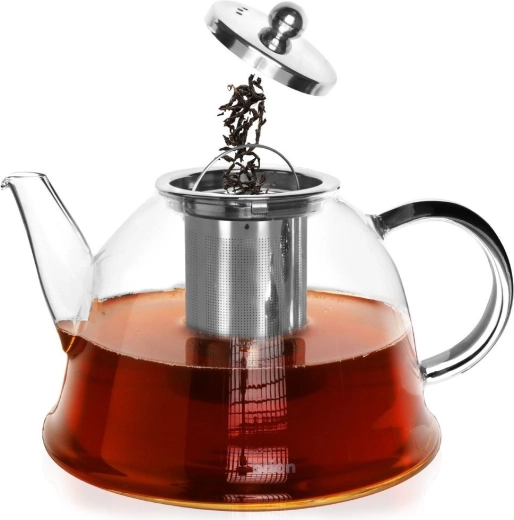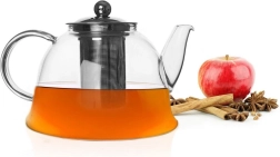 Šiuolaikiškas stiklinis arbatinukas palengvina mėgstamų juodųjų, žaliųjų, aromatizuotų arbatų ir žolelių užpilų ruošimą. Borosilikatinis stiklas yra lengvas, tvirtas ir atsparus terminiams šokams -20 °C iki +180 °C diapazone (kaitinkite palaipsniui). Išimamas smulkus nerūdijančio plieno sietelis sulaiko lapelius ir smulkias žoleles už puodelio ribų, tad mėgausitės švariu gėrimu.