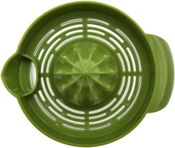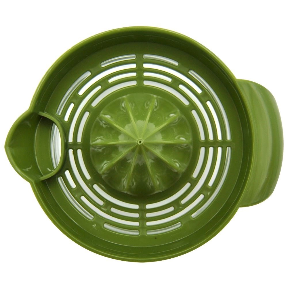Klasikinis stiklinis sulčiaspaudis su plastikiniu kūgiu ir integruotu sieteliu leidžia patogiai spausti sultis tiesiai į talpą. Kompaktiški matmenys ir stabili bazė užtikrina saugų ir greitą naudojimą be netvarkos.