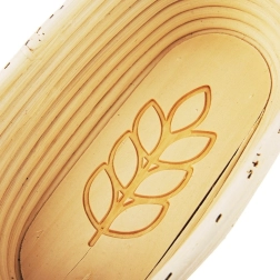Praktiška ovali krepšelė iš natūralaus ratano idealiai tinka duonos tešlos kildinimui apie 1 kg svorio (apie 500 g miltų). Grietuota vidinė struktūra ir varpos motyvas dugne sukuria ant kepalo dekoratyvų įspaudą, o aukštesnės sienelės patikimai laiko tešlą, kad išvertus ant skardos ji neišsileistų.