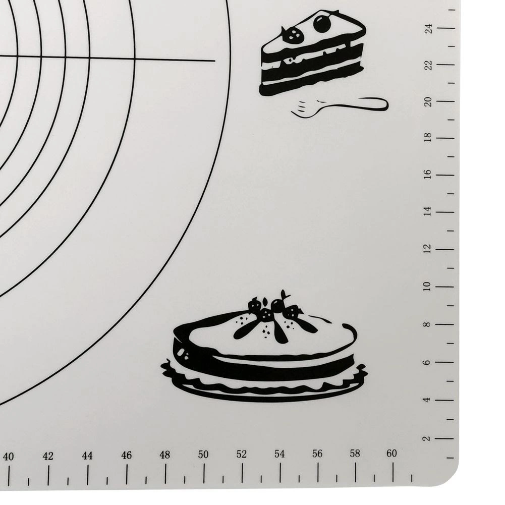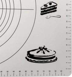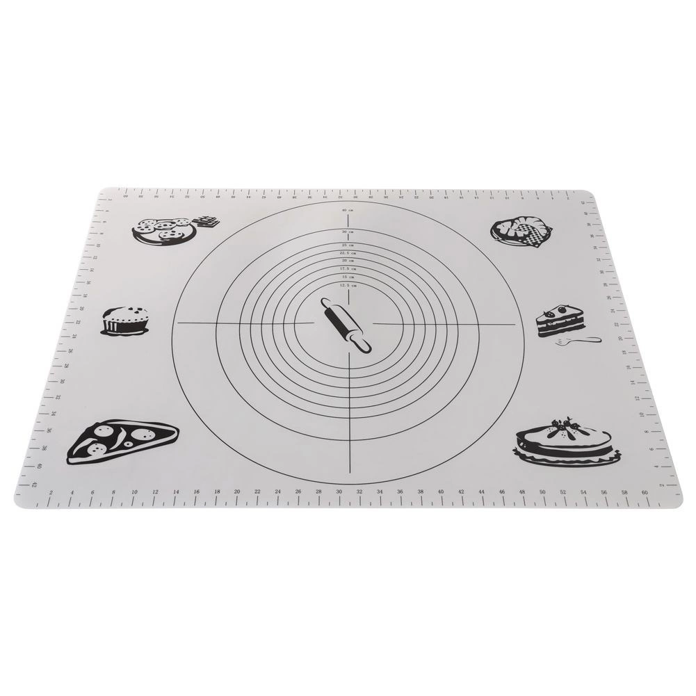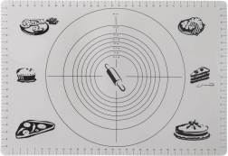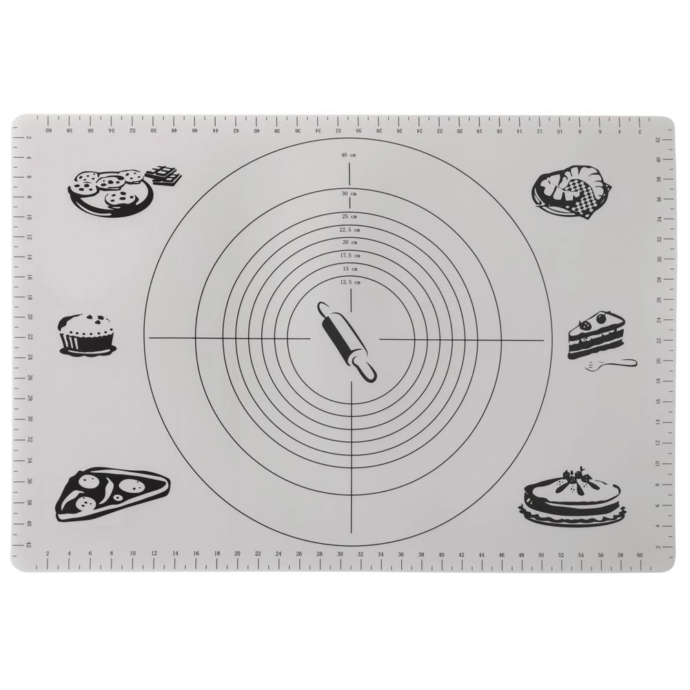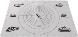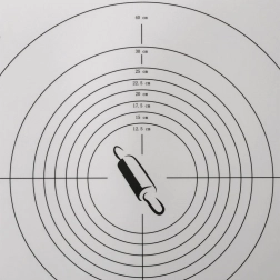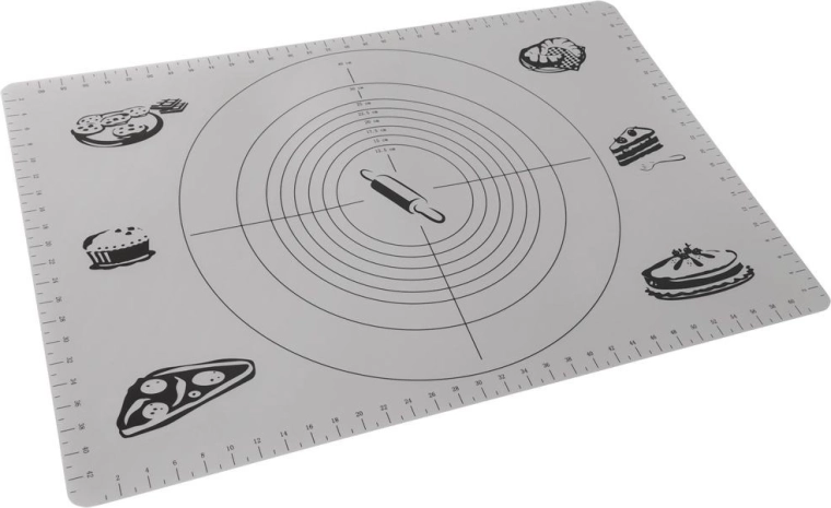 Praktiškas virtuvinis kilimėlis, 65 × 45 cm, su pažymėtais matuokliais centimetrais ir apskritimų šablonais tiksliai tešlai formuoti. Jis yra lengvas, patvarus, nelipnus ir lengvai prižiūrimas. Puikiai tinka ruošti picą, kepinius ir makaronus, saugo stalviršį ir palengvina kočiojimą be perteklinio miltų barstymo.
