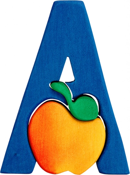 Medinė įstatoma raidė A su obuolio motyvu – puiki priemonė pirmajai pažinčiai su raidėmis. Detalės tiksliai įsistato, kas skatina susikaupimą ir kantrybę. Paviršius padengtas vaikams saugiomis spalvomis, gaminys atitinka ES saugos standartus.