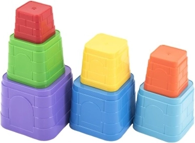 Spalvinga Technok Kubus sulankstoma piramidė iš tvirtų plastikinių kubelių lavina smulkiąją motoriką, erdvinį mąstymą ir kantrybę. Rinkinyje yra 7 kvadratinės formos detalės, kurios tiksliai susideda viena į kitą. Vaikai ja smagiai žais namuose, smėlyje ir vandenyje. Lengvas dėliojimas, spalvų ir dydžių pažinimas, stabili iki 38 cm aukščio piramidė ir saugus atlikimas nuo 12 mėn.