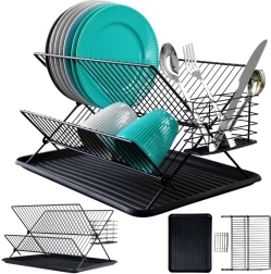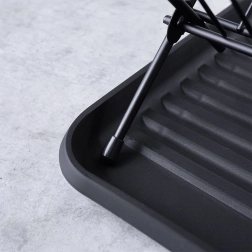 Džiovintuvas pagamintas iš patvaraus metalo elegantiškos juodos spalvos, turi neslystančias kojeles stabilumui ir išimamą plastikinę vonelę patogiam vandens išpylimui ir valymui. Sulankstoma konstrukcija taupo vietą, kai nereikia pilnos talpos.