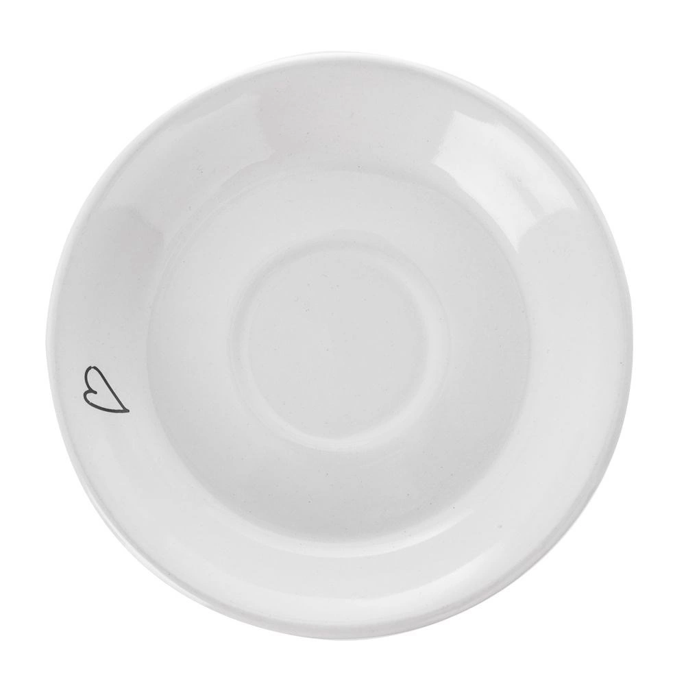 Balta keramika su subtiliu juodu linijiniu angelo ir širdelių piešiniu suteiks jūsų stalui elegancijos ir originalumo.