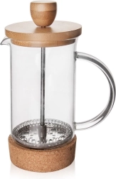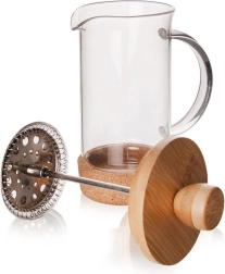 Šis stilingas prancūziškas kavinukas sujungia skaidrų borosilikatinį stiklą su natūraliais akcentais – bambukiniu dangteliu ir kamštine pagrindo žiede. Nerūdijančio plieno stūmoklis su sieteliu patikimai atskiria kavos tirščius ar arbatos lapelius, tad per kelias minutes mėgausitės švariu ir aromatingu gėrimu. Dėl ergonomiškos stiklinės rankenėlės ir tikslaus snapelio pylimas yra patogus ir be varvančių lašų.