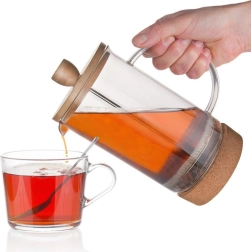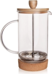 Elegantiškas stiklinis prancūziškas presas, 750 ml talpos, lengvam kavos, arbatos ir žolelių paruošimui. Derina karščiui atsparų borosilikatinį stiklą, nerūdijančio plieno stūmoklį su smulkiu sieteliu ir bambukinį dangtelį su nuimamu kamštiniu pagrindu. Siūlo patogų pilstymą dėl snapelio ir rankenos, lengvą priežiūrą ir švarų skonį be nuosėdų.
