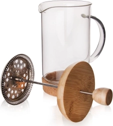 Šis stilingas prancūziškas presas leis paruošti tobulai aromatingą kavą ar arbatą be nereikalingų filtrų ir kapsulių. Stiklinė kolba iš borosilikatinio stiklo atspari temperatūroms iki 180 °C, o nerūdijančio plieno stūmoklis su smulkiu sieteliu patikimai atskiria tirščius ar arbatos lapelius. Bambukinis dangtelis ilgiau palaiko gėrimo šilumą, o pasukus dangtelį lengvai perjungsite tarp uždaryta ir atidaryta pylimui.