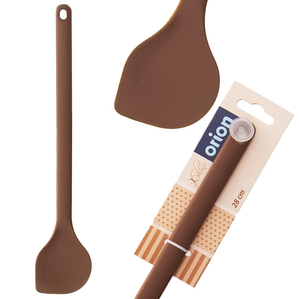 Universali rudos spalvos silikoninė mentelė kasdieniam gaminimui ir kepimui. Dėl metalinio sutvirtinimo ji yra tvirta ir kartu lanksti, atlaiko temperatūras nuo -40 °C iki 220 °C ir yra saugi nelipniems paviršiams. Turi neslystančią rankeną, kilpelę pakabinimui ir galima plauti indaplovėje.