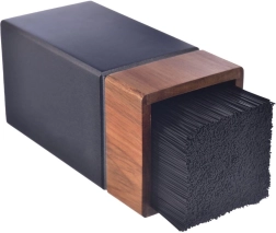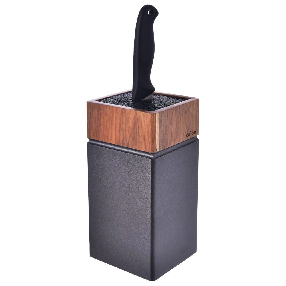 Peilių stovas WOODEN sujungia tvirtą akacijos medieną su atspariu plastikui elegantiškos juodos spalvos. Universali plastiko plaušelių įklotė leidžia dėti įvairios formos ir dydžio peilius jų nepažeidžiant. Dėl kompaktiškų matmenų 11 × 10,5 × 22,5 cm jis tinka bet kuriai virtuvės erdvei ir kartu suteikia saugią, tvarkingą laikymo vietą.
